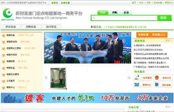 广东省江门市新财富控股有限公司是由香港上市公司投资控股的外资企业集团,具备雄厚的经济实力与丰富的基地开发经验,拥有高素质的环保专业人才和管理团 队。专门从事环保工业基地投资建设和运营管理,目前拥有“江门市崖门新财富环保工业有限公司”(定点电镀工业基地)、“台山市海宴新财富环保工业有限公 司”(定点电镀工业基地)和“江门市古井新财富环保工业有限公司”(线路板工业基地)等多家企业,并同时投资建设其他多个环保工业基地。