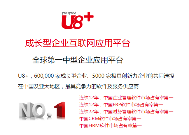 用友深耕中国及亚太市场25年,将中国企业的经营智慧及全球先进管理思想和技术内化于U8+产品及方案,全面满足您在不同的发展阶段的管理诉求,追求实效,快速应用,通过数据驱动实现深度价值创造。
